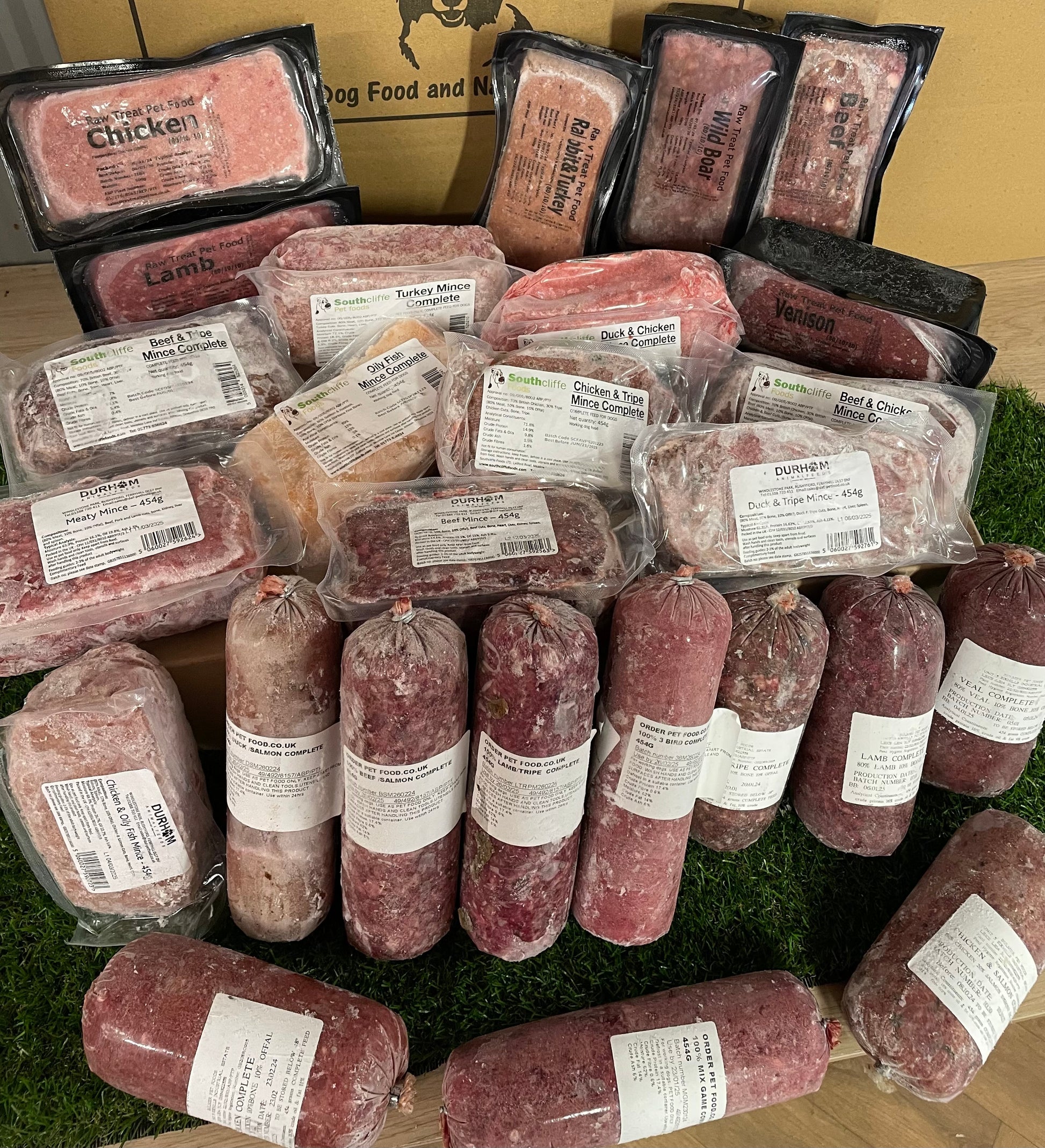MIX AND MATCH 5 brands - Bulmer, DAF, Raw Treat, Southcliffe, Stobart Premium Raw and Orderpetfood (made by Yorkshire Raw) 80/10/10 minces. A mixed selection of 80/10/10 minces. Each pack is approximately 454g, except Raw Treat, which are approximately 500g. (Bulmer Rabbit not included in mixed packs).