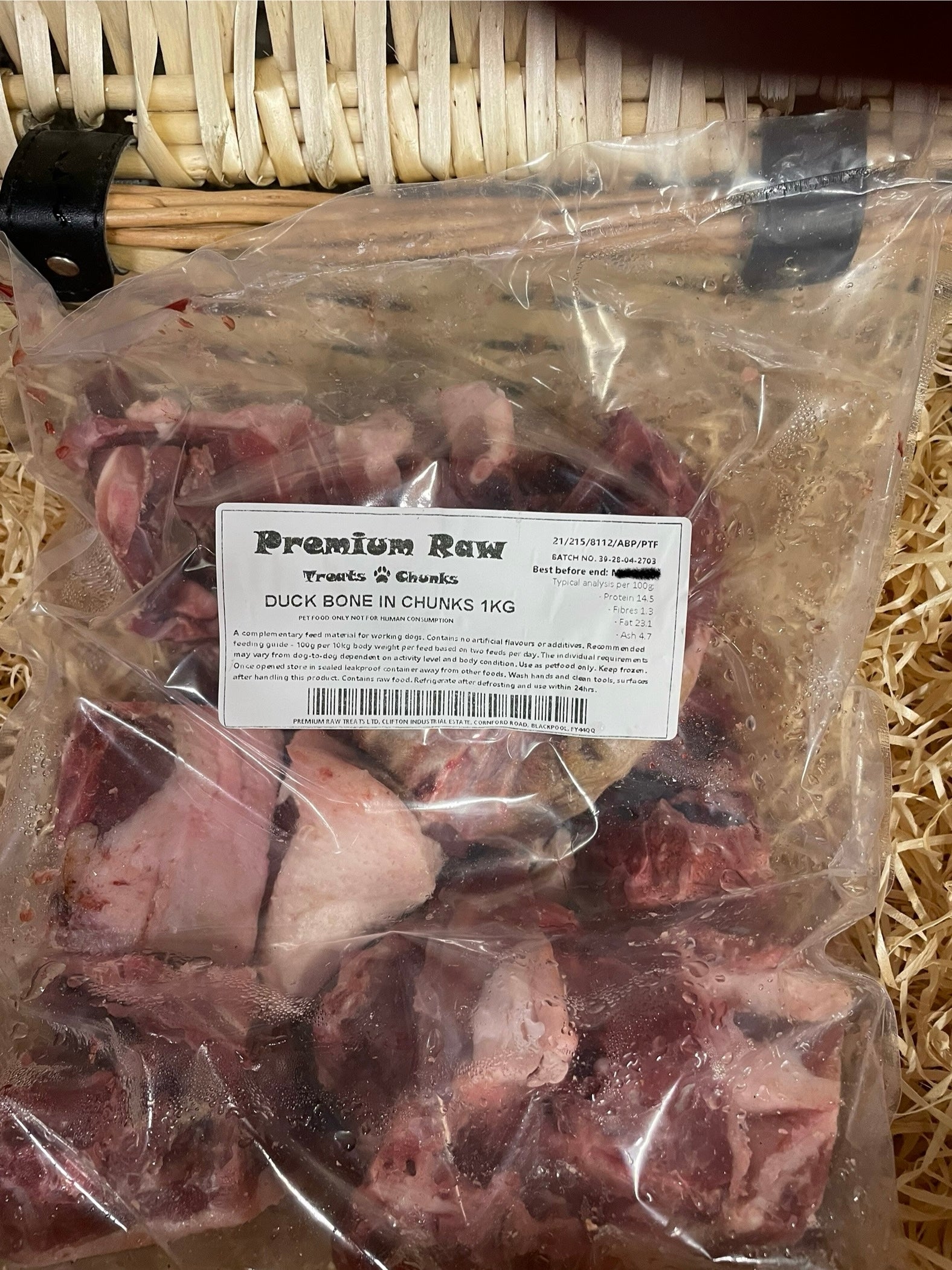 Approx 1kg of raw, frozen duck meat with bone. Premium Raw Treats & Chunks.
