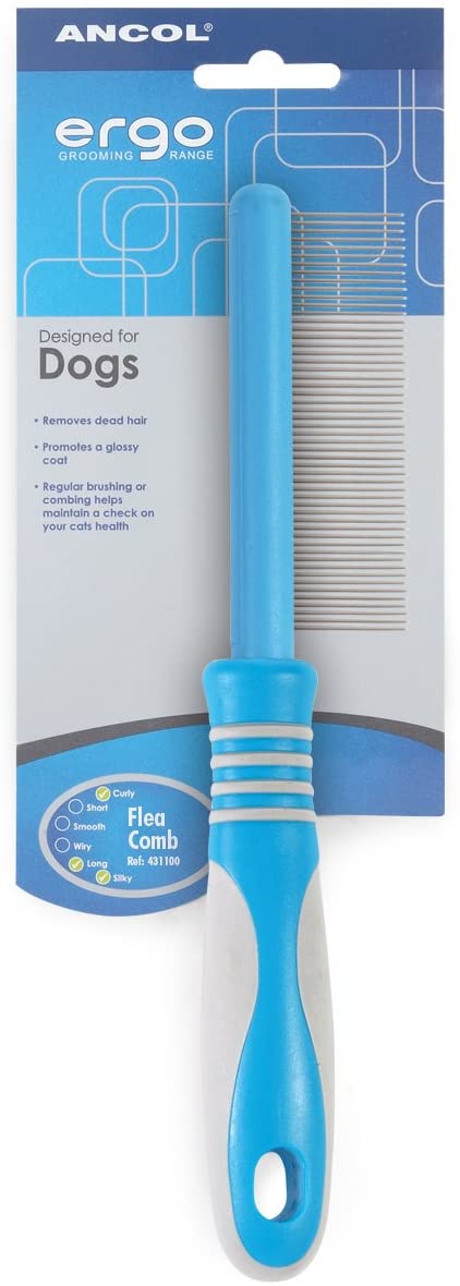 The Ergo Flea Comb is ideal for getting fleas and flea eggs out of your pet's coat. It has fine, stainless steel teeth that trap and remove any fleas. The stainless steel teeth are rounded for your pet's comfort.