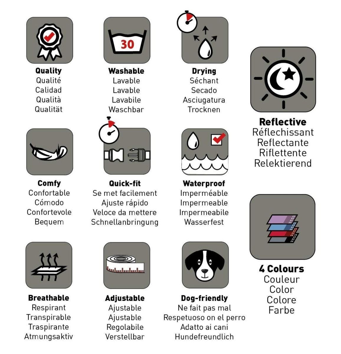 Strong 3 point button release clip ** Soft neoprene inner lining ** 3M Reflective stitching for safety.