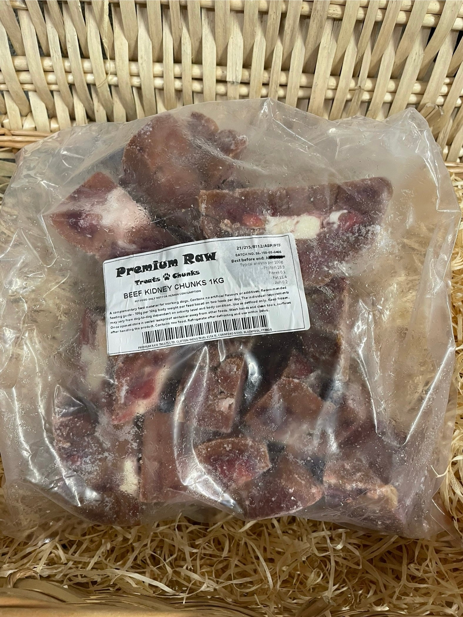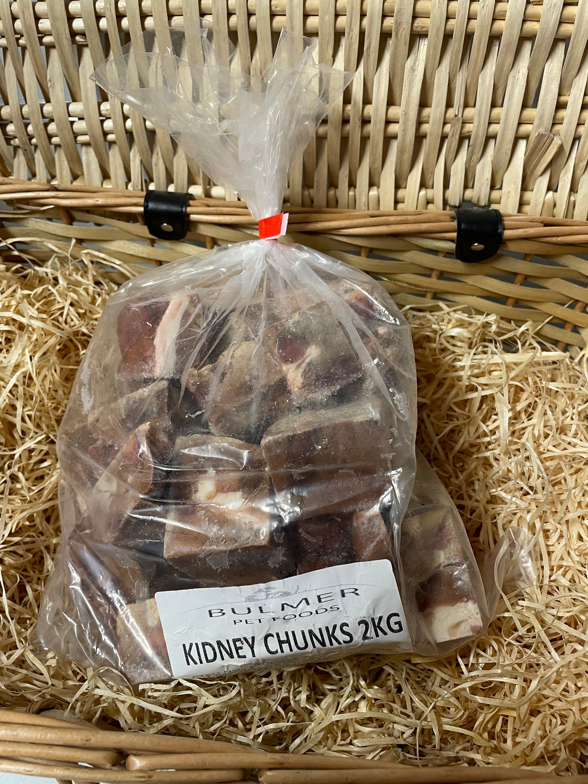 A 1kg or 2kg (approx) bag of frozen raw kidney chunks.