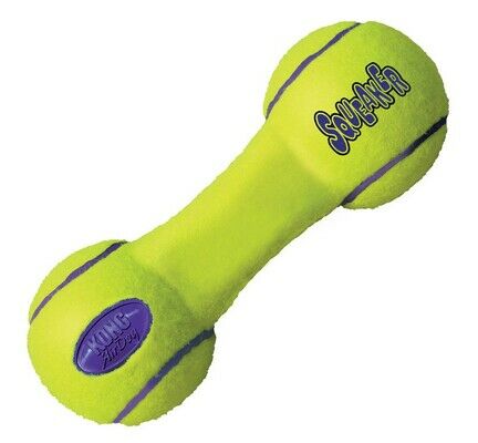 KONG AirDog® Squeaker Dumbbell combines two classic dog toys -the tennis ball and the squeaker - to create the perfect fetch toy. This non-abrasive, high-quality material will not wear down dog's teeth.