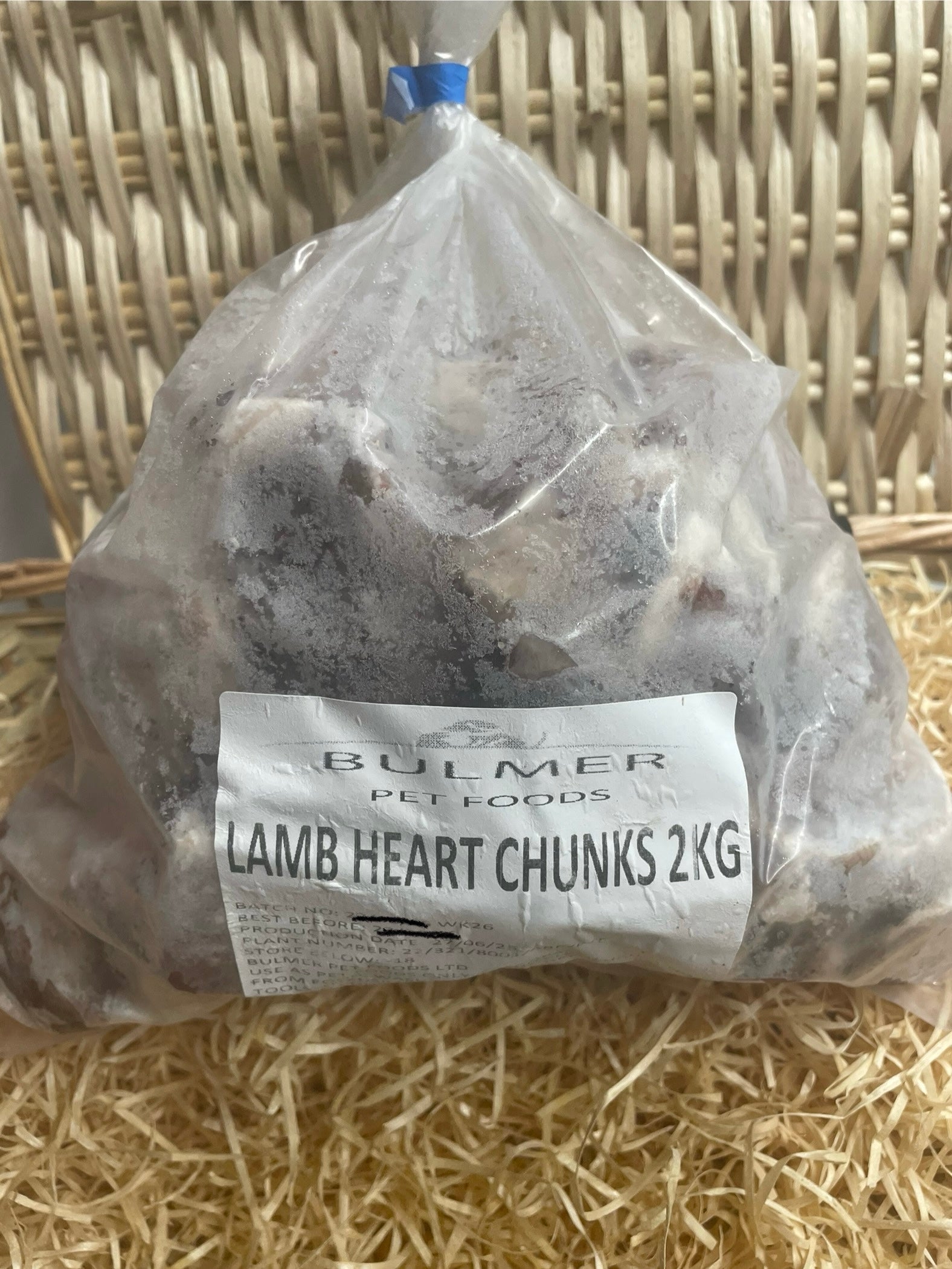 Raw, frozen Lamb Heart Chunks, approx 2kg.