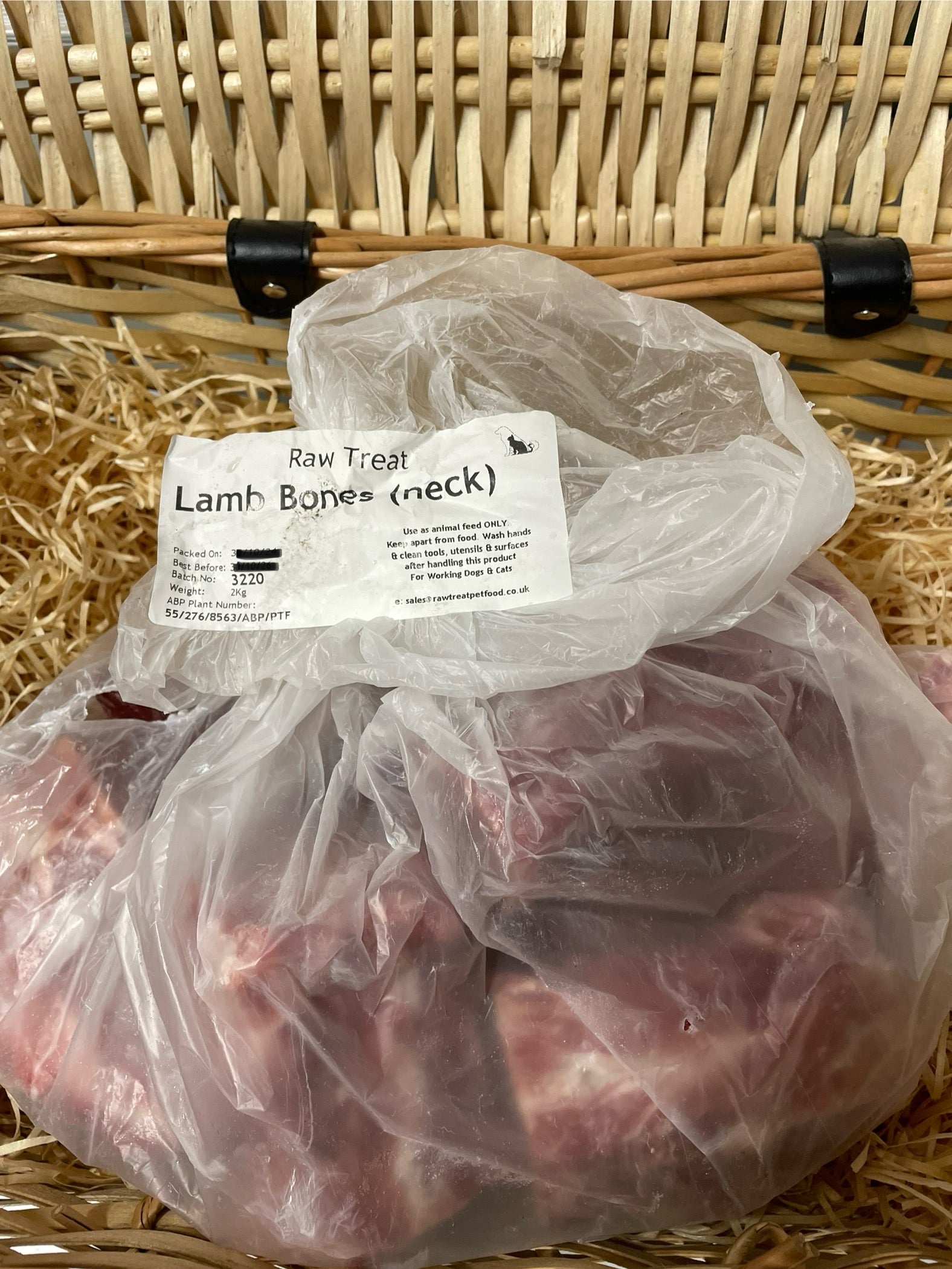 Dogs love to chew on bones, both soft and hard and a lamb neck bone is the perfect balance between the two.