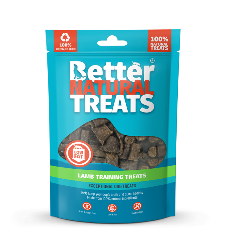 Made from the finest cuts of Lamb and Duck. These succulent treats are made using Lamb meat and Duck meat, no meat derivatives or by-products. These delicious Lamb Training Treats can be given for good behaviour and are easy to break up as training rewards. Extremely low in fat and super high in protein make this a Better Natural Treat, with no grain or gluten and no artificial flavours or colouring.