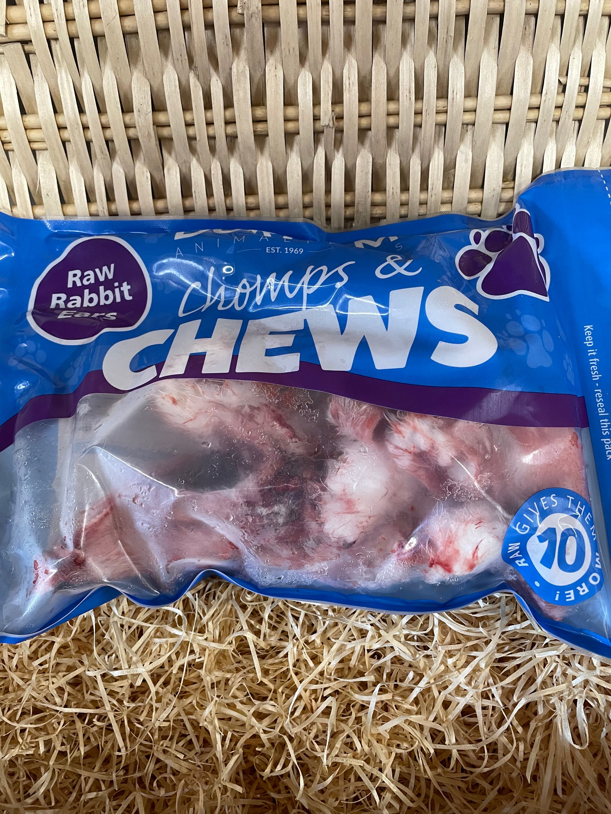 Raw, Frozen Rabbit ears with fur. Rabbit ears contain natural fibre, making them a useful addition to your pet’s diet, in addition to being a tasty, chewy snack.