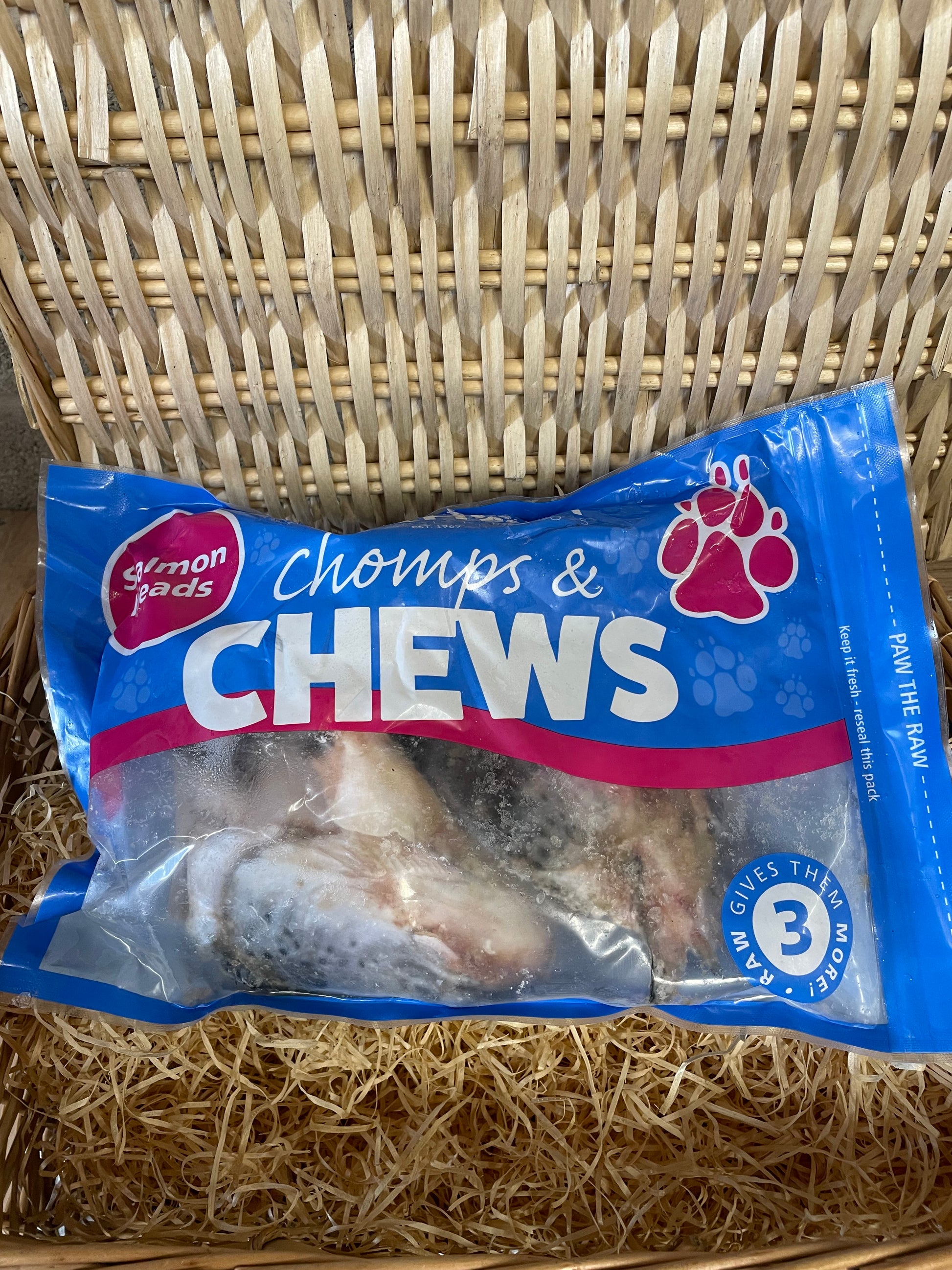 Salmon heads are a rich source of protein, chock full of Omega-3 fatty acids, iron, zinc, calcium, and a good amount of Vitamin A.