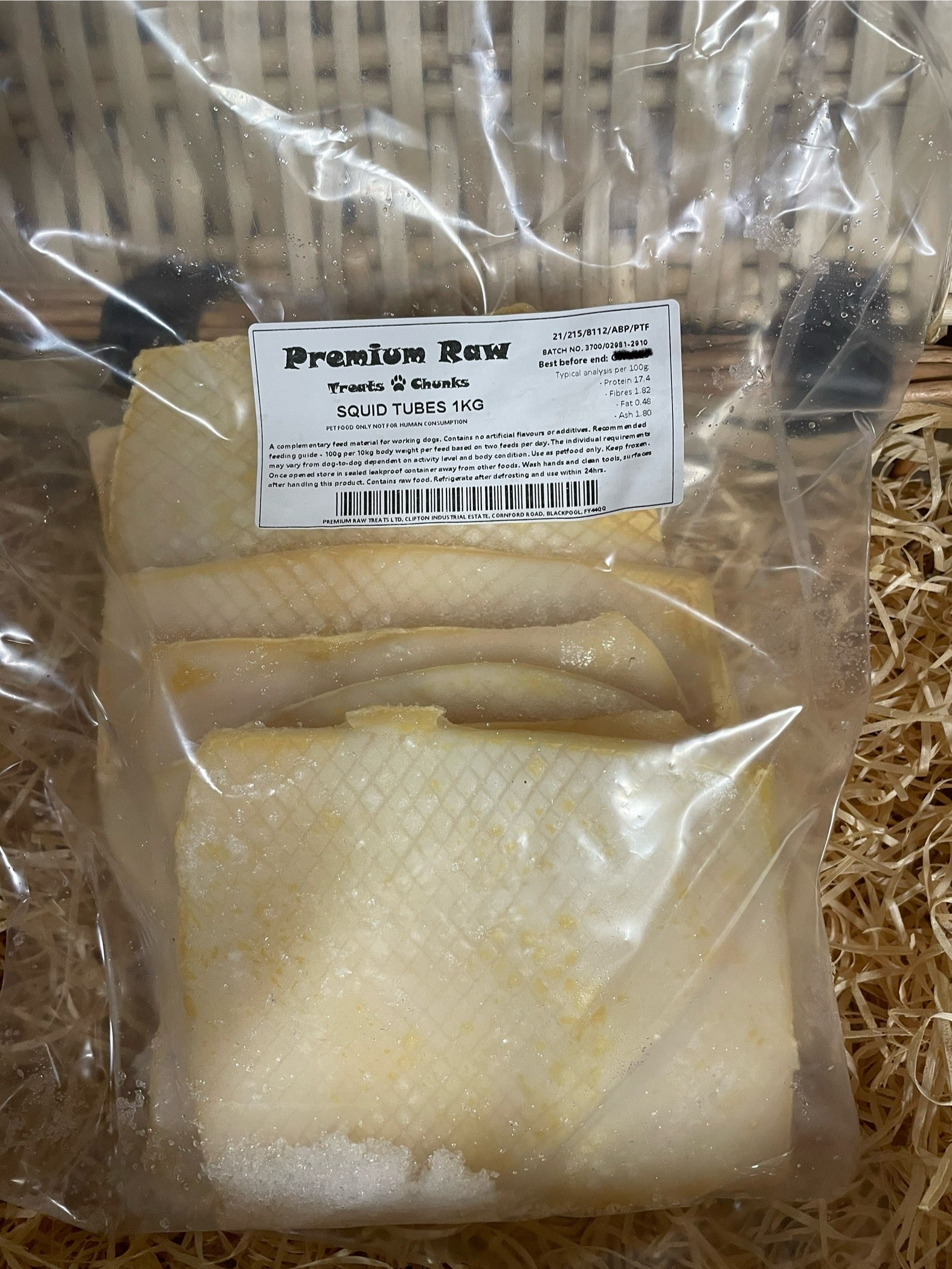 Approx 1kg of raw, frozen squid tubes. Premium Raw Treat & Chunks.