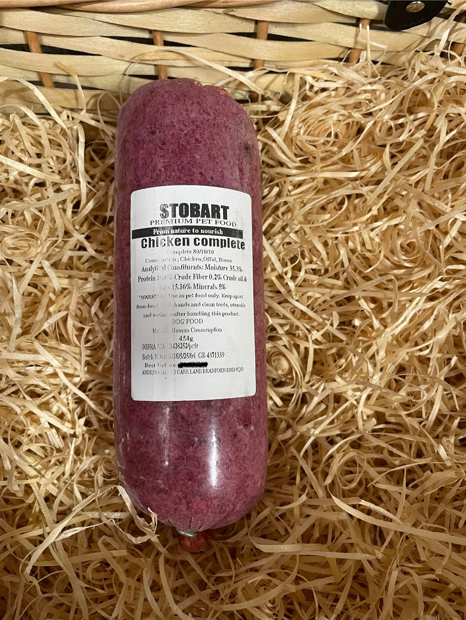 80% chicken muscle meat with 10% bone and 10% offal. Each packet is approx 454g. Contains small pieces of bone.