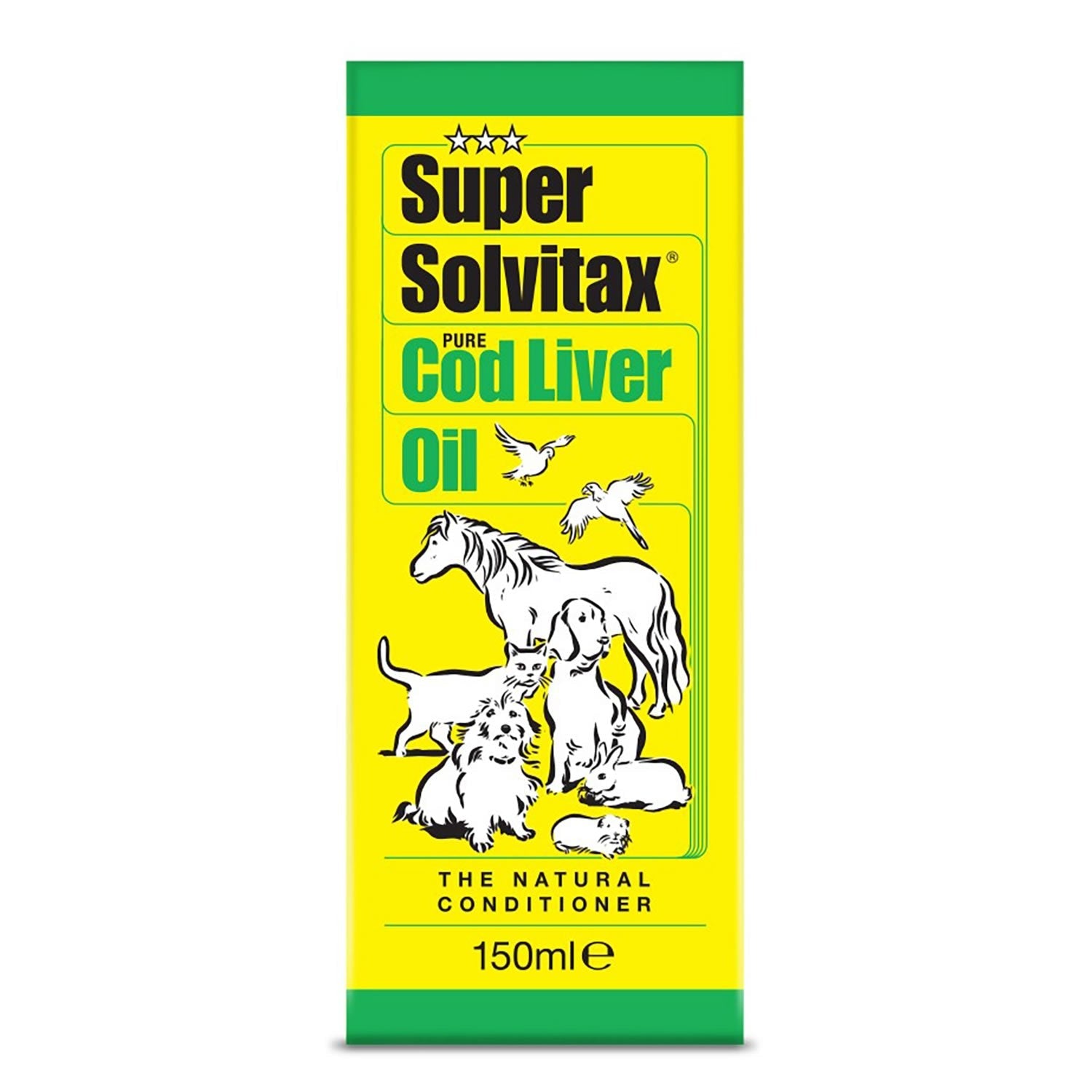 Super Solvitax Pure Cod Liver Oil is an excellent natural source of vitamins A, D and E, digestable energy and is rich in polyunsaturates which play an important part in helping to maintain strong bones and teeth, good skin, great condition fur and feather and bright eyes.