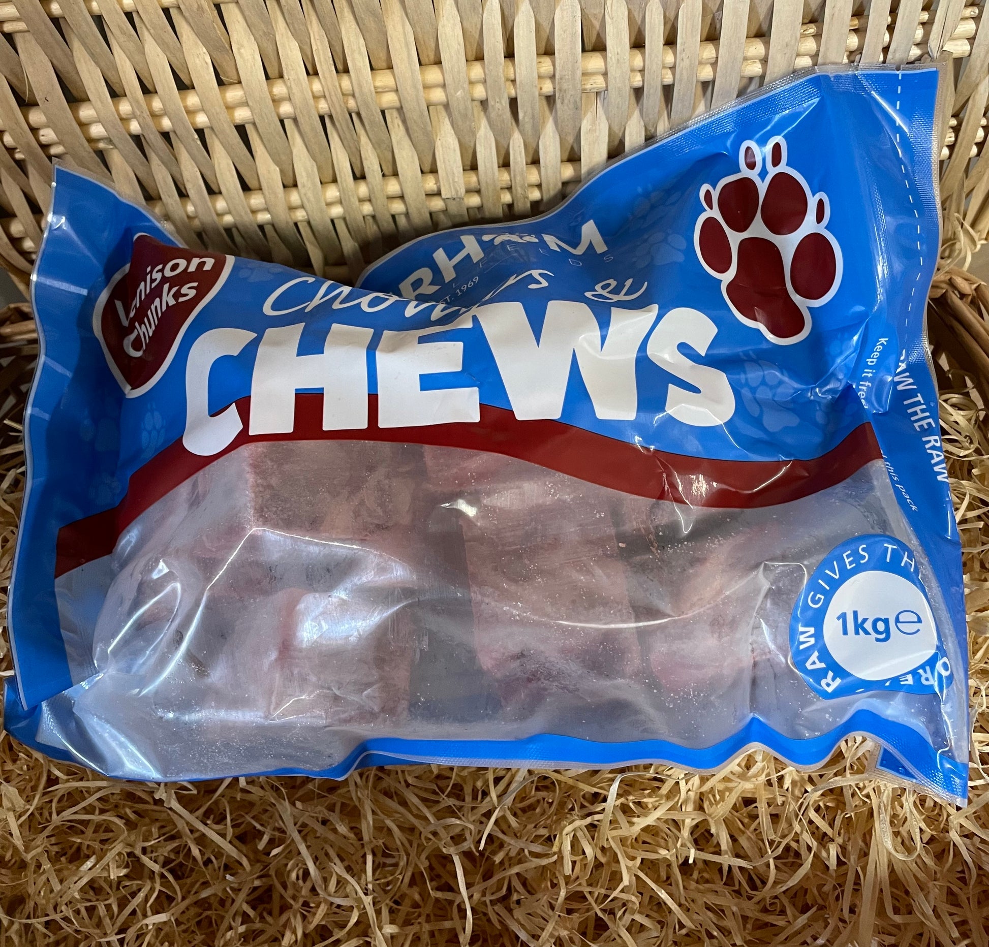 Premium Raw Treat & Chunks typical analysis per 100g: Protein 21.9; Fibres 0.1; Fat 5.1; Ash 1.1.